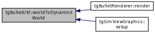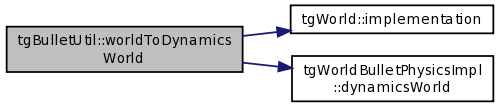 static btSoftRigidDynamicsWorld & | worldToDynamicsWorld (tgWorld &world) |